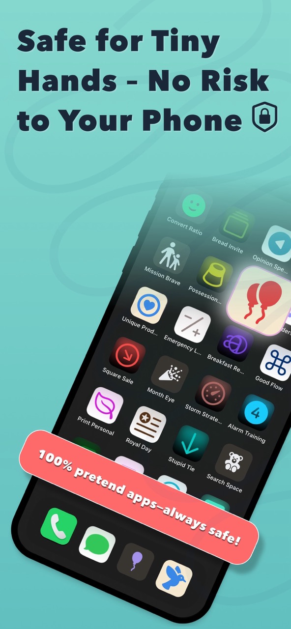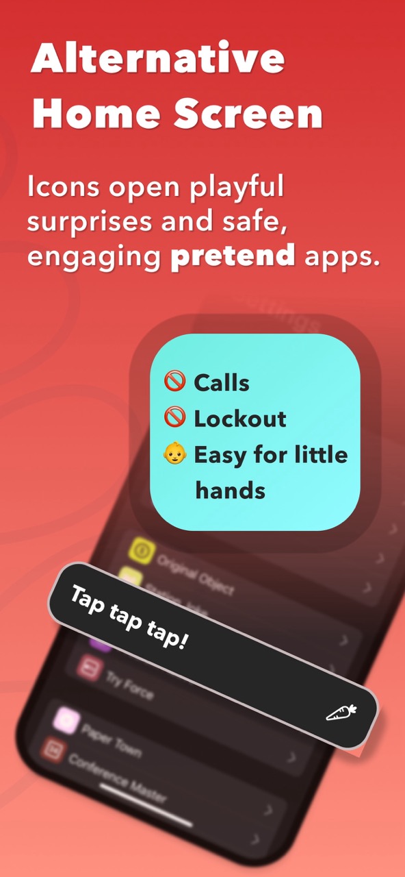 ToddlerLock creates a safe, infinite, pretend iPhone Home Screen filled with tappable icons and playful interactions. Every app is a fake one. Every tap is harmless. Nothing on your real device can be changed, deleted, or opened — ever.