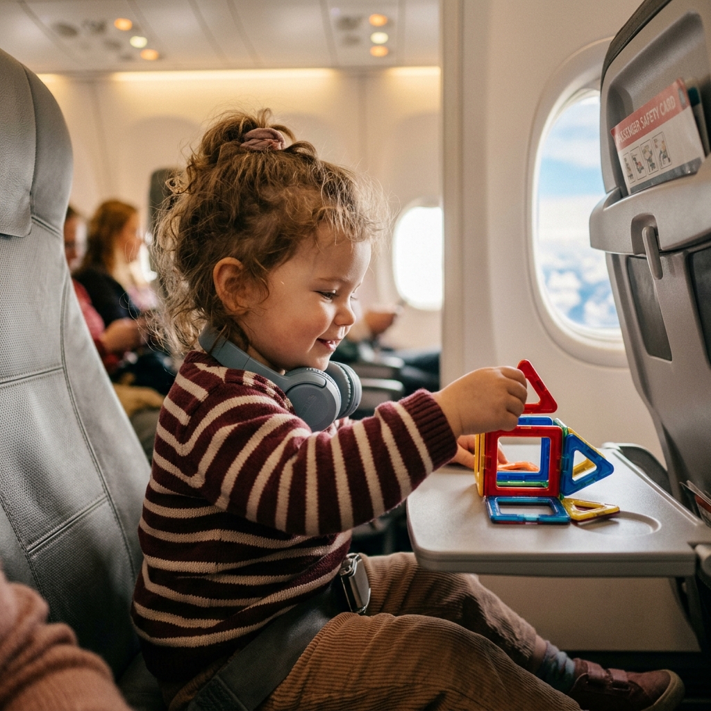 A newly walking 1-year-old and a chatty 2-year-old need different travel setups. If you pack only for “toddlers” in general, you may end up with toys that are too advanced, too babyish, or too messy for the actual child in your seat row.